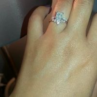 2503 days agoHi All! We're shopping for wedding bands... I wanted something unique but didn't want something that was going to take away from my engagement ring. A pave band just didn't go with my dainty e-ring band. This is my top pick. What do you think?