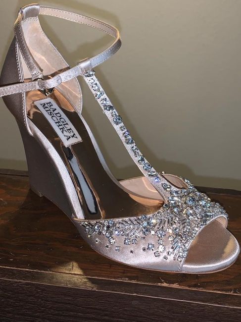 These are mine Badgley Mischka wedges I decide to go with these because I want to feel comfortable since I plan on dancing alot and I love high heels but I didn't want to having to sit out of dancing because my feet were in pain. What do your weeding...