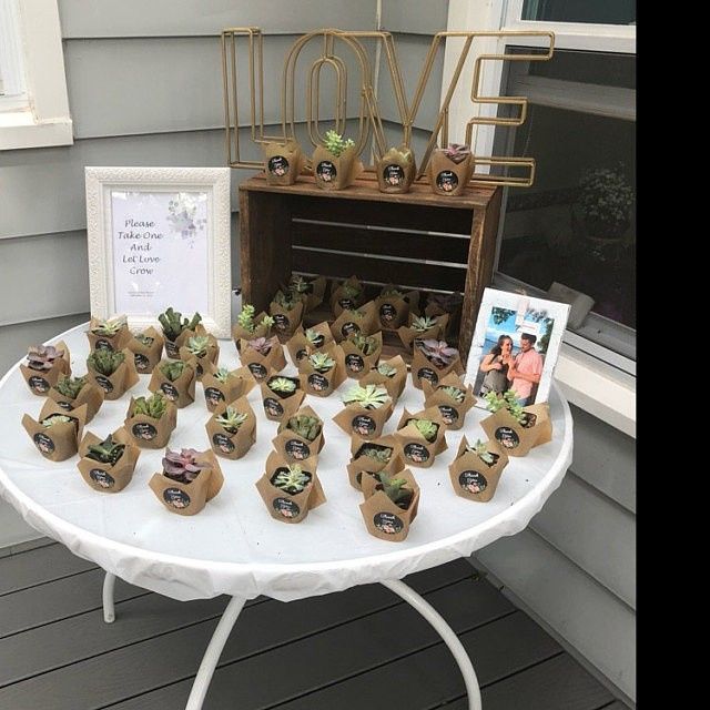 They also have a small metal handle on the box that you can't see here. Each couple will get a box and you can close up the box for safe commuting after the wedding. The photo is a fake succulent, the actual favors are real succulents. For 100 of...