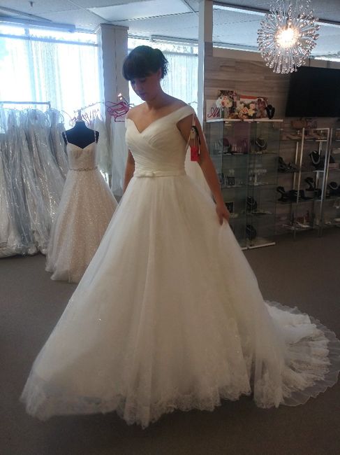 While dress shopping this weekend with my 7 family/soon to be family members, I tried on a few dresses to humor them! I wanted a fitted, more plain, minimal lace/beading dress and this is the gown they handed me (attached). I came out and all the...