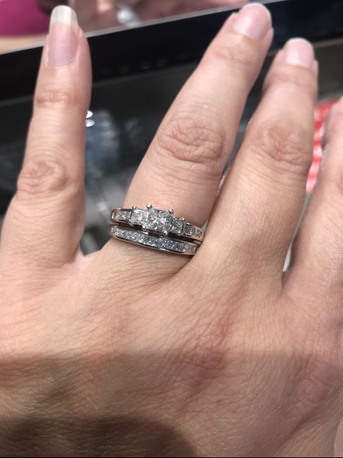 We went just looking to price things out and I ended up completely falling in love. I thought I wanted a plain band but saw this one that has the exact shape diamonds and size as the sides of my E Ring. We bought FH’s too. He hid it from me though...
