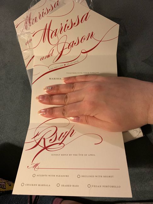 How beautiful are these! We did the all-in-one invitations from Minted in an effort to be as eco-friendly as possible (without doing e-vites) and they came out perfectly! I strongly recommend Minted to everyone! This is the “Winter Flourish” suite...