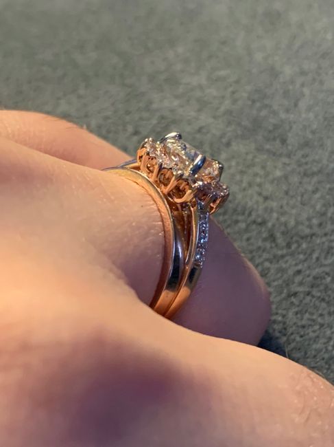 We have known each other for 9 years dating for almost 4 we got engaged on Christmas Eve of 2018 and getting married in April of 2020 Im in love with the ring my FH picked it is so me he bought this rose gold Halo ring it came with the wedding band...