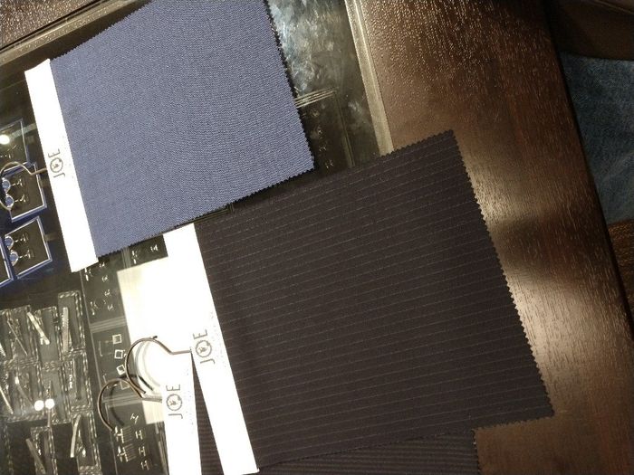 My wedding colors are navy blue, burgundy red & gray. All our flowers & background decor are going to be burgundy red(s), FH picked out a blue color suit(not true navy)to wear(I'll attach a photo, it's the lighter blue color). Should my MOH...