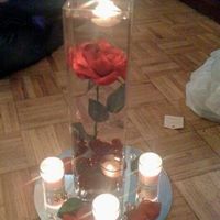 5816 days agoOkay- so for my Sept. wedding- I've pretty much decided to do the submerged rose, with floating candle, and votives and mirror at it's base. I played around a bit. I've included my inspirationl photo- with regular cylinder vase and then the photo of...