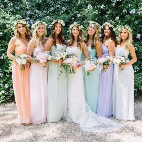 Hello! I have chosen a knee length wedding dress and I'm having a really hard time finding photos of full a bridal party with a bride in a shorter dress. I want to decide if my 'maids should wear long or knee length as well. For reference, this is...