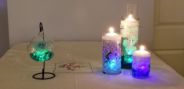 Me and my mom decided to go the DIY route for my centerpieces to try to lessen the flower count. So we had some fun this afternoon for some ideas. I would love to get some opinions from my DIY brides!