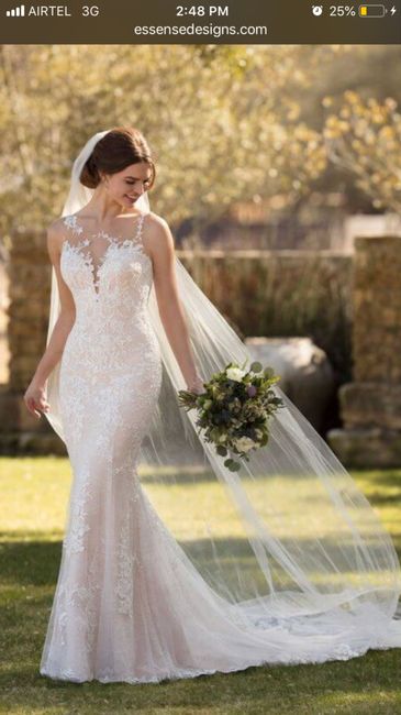 Is anyone else wearing an Essence of Australia wedding dress? Mine is D2606. It’s very long on me, so I’m excited to get it fitted! First picture is from when I found the gown and the other is from EOA’s Instagram page :-)