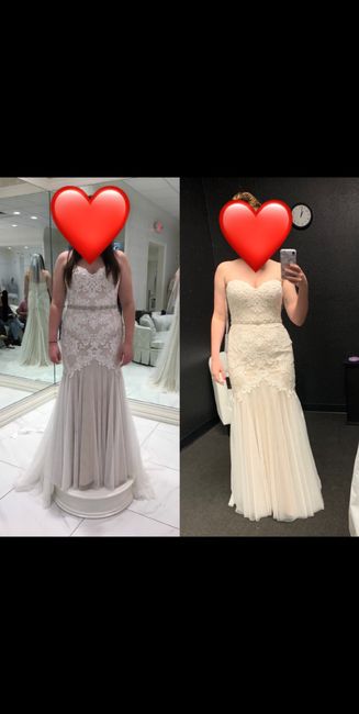 Before/after picture of my dress. I had my final fitting yesterday and have also lost 20 lbs since I bought my dress last year. Hoping to shave off a couple more pounds in the next 25 days but also trying not pressure myself too much. I was able to...