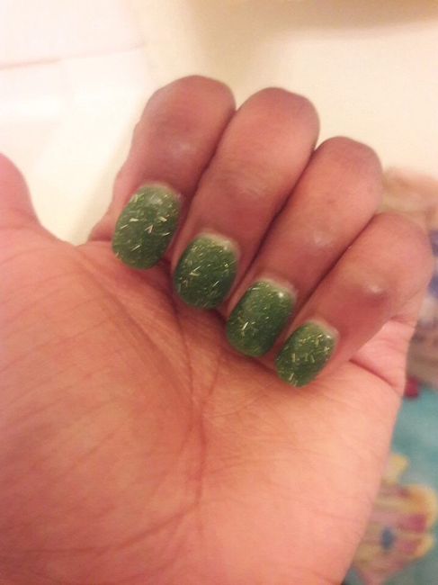 I got my nails done for my bday (st. Patty’s baby) and I decided to try the dip method instead of my normal shellac. Leaning towards getting this for the wedding I just like how some of the colors have the sparkle. Green nails