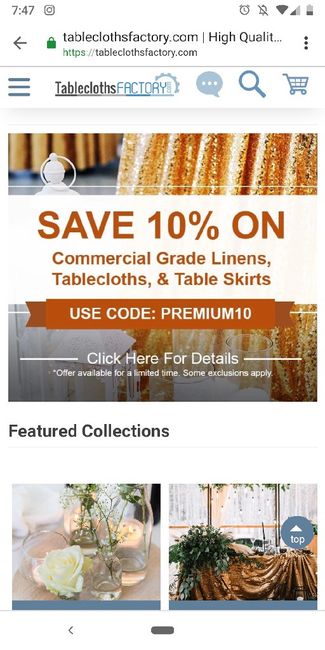 I am on the hunt for cheap tablecloths. I've gotten a few quotes for renting the tablecloths and napkins, and they charge $10/tablecloth and $0.60/napkin. I need 20 tablecloths and roughly 200 napkins. I found a website, efavormart.com, and the...