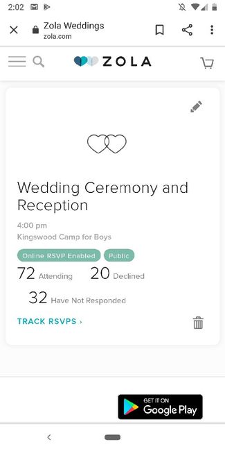 How is everyone that is collecting RSVPs doing? Our deadline is August 28th and we're waiting on 32 people. We gave ourselves extra time to follow up with people since we knew we'd have to do that with some. Shout out to Zola for making the RSVPs...