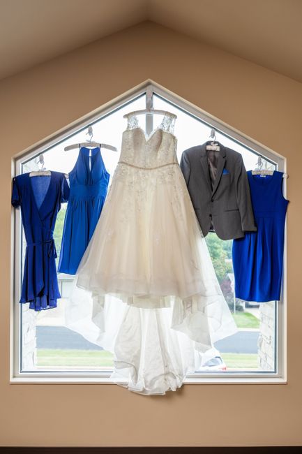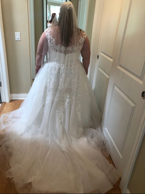 Covid and some other stuff has got me down. Cheer me up by posting pics of YOU (not a model, it's too fake) in your dress? It would be a nice lift. Here's mine at my final fitting and one getting ready with my girls on game day.See that bridal stress...