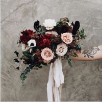 2642 days agoI am wanting a bouquet with this type of moody look. However I'm not savvy with floral names by looking at them. I need help identifying the flowers and fillers used in this bouquet? Thank you in advance!