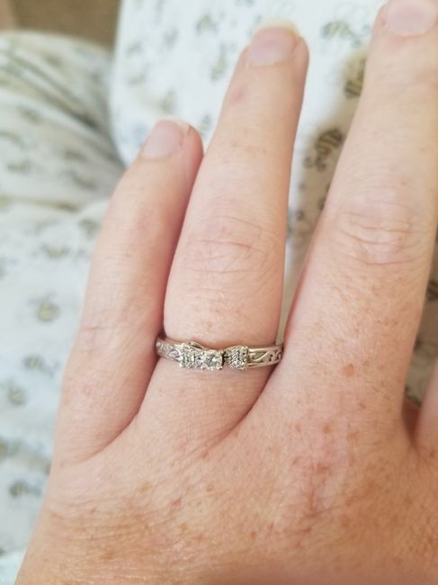 Having a hard time deciding what kind of style band will go well with my engagement ring. Can I see yours for inspiration? Here's my 3 stone Moissanite ring