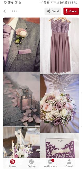 Thoughts on a dusty rose(mauve) & grey color scheme for a fall rustic/romantic theme? I originally wanted dusty rose(mauve) dresses and navy blue suits with gold decorative accents but the fiance axed the navy suits because it reminds him if the...