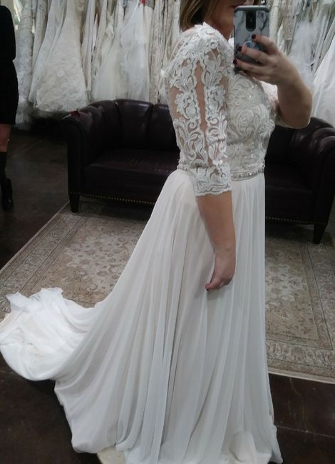 Hi everyone!! I bought my dress today at a bridal consignment shop and I absolutely love it!!!! I'm planning to add some buttons at the V in the back to make it about 4 inches higher. Other than that, minimal alterations! Do I have any dress twins?? ...