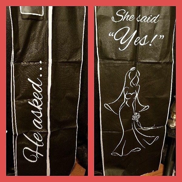 So I ordered my dress from coco melody and they include a garment bag. So I went to etsy and found this really cute bag. I got black because my dress is red and I don't want anyone to see the color. Came in today. What do you guys think!!!