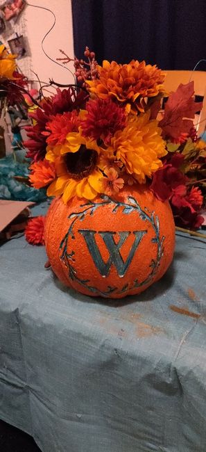 I found four of these pumpkins. I toned down the orange but they have this line through them. I tried lace around, but it looked odd. I have other pumpkins with florals out the top. I was hoping to do something different. Pinterest wasn't much help....