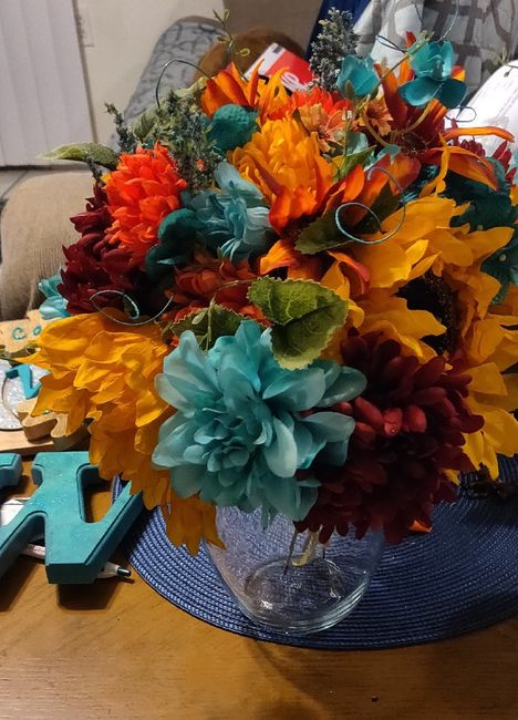 My flower girl is our only wedding party because she asked us! I want to buy/make her jewelry. I would love to incorporate teal and/or sunflower. Here is my boquet for colors. Any ideas??