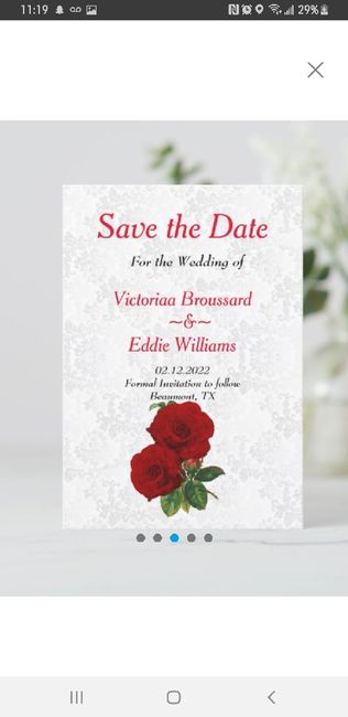 ,here are my Save the dates What color can the guys wear black maybe ?? My girls will all my in red with different styles of dresses