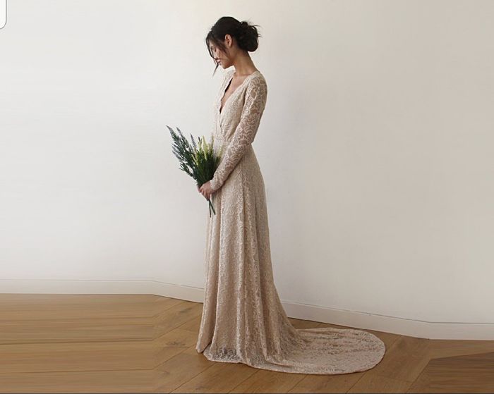 My dress finally came in the other day but unfortunately it was the wrong style. The one I received had quarter sleeves and no trian but same champagne color so I was able to try it on and I'm so excited because this (the one pictured) is 1000% my...