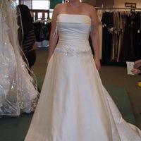 Hey girls...I haven't posted anything before...just been reading your posts so far. I went shopping for my wedding dress yesterday and these are the two I am debating on. Please give any advice good...