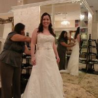 My dress came in and it is so much more beautiful and sparkly than the sample dress that I tried on months ago. In these pics the corset had not been laced up. It needs some alterations because I have...