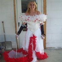 I think I have a winner for today! Do you think the placment of the red feathers is not too flattering????