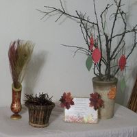 First of all, thank you to all the ladies who gave advice. So my entry way table is done (well except for the overlay that will get cut with all the rest). The branches are from my moms apricot tree....