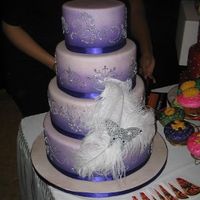this is the cake I want in fushia minus the feather. It cost $1600.00 for 150 people. I was thinking getting a replica of this cake made out of cardboard except one layer for us to cut; and...