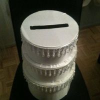 I finished up my card box last night. I feel like it needs something because it looks too washed out without anything. I played around with it and put a purple ribbon on the bottom of the one tier but...
