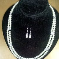 This was made from my pearls I wore for my jr. prom! A co-worker of mine took them apart added more and changed the crystals. She did such a beautiful job! As an added bonus, she made the earrings. I...