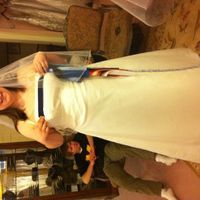 I'll add a few more pictures later, but here is the one I have now. I'm holding the navy strip, which is what I'm ordering it in. (that's my brother in the background :-] ) It's an Alfred Angelo...