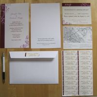 My invitations from Vistaprint came in! With Hayley C.'s help and special email discounts, I did 3 separate orders to get 80 invites and envelopes, 100 RSVP postcards, 50 menu cards (rack cards), 280...