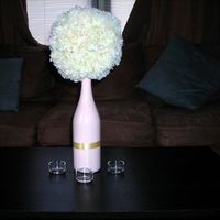 Okay I am using wine bottles that I am spray painting pink (colors are gold, pink, & white). Photo 1: Big pomander ball w/ ribbon Photo 2: Big pomander ball w/out ribbon Photo 3: Smaller pomander ball...
