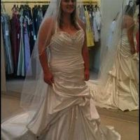 So I was down to two dresses. #1 is a Demetrios gown that I absolutely fell in love with. I am a simple girl, who loves simple things..and number one fit that perfectly. #2 is from davids bridal, and...