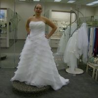 I went dress shopping for the first time today. I tried on a million things and kept coming back to the first one I tried on. I wasn't completely sold on the bottom because I didn't want a "poofy"...