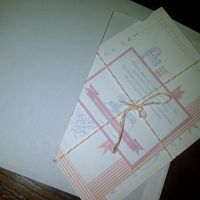 Here's what we have so far...anything we are missing? I'm looking for envelopes and stamps now and some tan colored paper to go behind the invites. I'm also thinking about tying some twine around the...