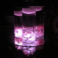 I made a sample centerpiece last night....what do you all think? Our colors are pink and black and we like lights!! So I found some LED submersible lights...I'm going to use just clear white and pink...