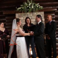 I couldn't make this post earlier because I had no pics! I've started getting some now...so here we go! First, it rained. =( So my lovely outdoor ceremony had to get crammed into the little cabin,...