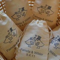 I'm am totally stumped with this!!! I'm not very creative but came across these cute Organic Muslin Favor Gift Bags. I was thinking I'd keep it simple and put pink candy ( our wedding color) and the...
