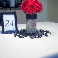 I just changed a few things with the centerpiece. Please tell me what you think. I tried it w/o the mirror, and I did not like it. So, tell me what you think about this one. Thanks!!!