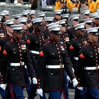 Hi everyone, So my man is a Marine and will be wearing his Dress Blues. I am totally lost as to what color schemes (decor, flowers, bridesmaids) will work with his uniform. I REALLY do not want navy...
