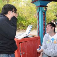 Our first date was Disneyland. A year into our relationship we went on a vacation with my family to Disneyworld. On the last day, when it was just the two of us left, I proposed. I had its et up with...