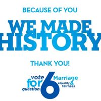 Maryland approves same-sex marriage law. * First state ever to legalize same-sex marriage by popular vote (okay, only an hour ahead of Maine, and only because our polls closed earlier, but still...)....