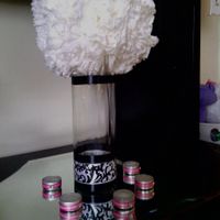 Ladies this is my candy table my wedding theme is hot pink daisies and damask. I boughr all the glass ware at goodwill and decorates myself this is one of mg many diy for mu wedding