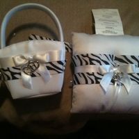 In an effort to save money I bought a pillow and two flower girl baskets from Wal-mart ($30) and intend to add just a zebra print ribbon. I pinned on the ribbon to see how it will look before I...