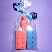 On etsy, I found a seller that sells Chocolate Lego blocks, they can do any color you want, all of them contain 2 block and one man, they are all made of chocolate. They are a good price a little less...