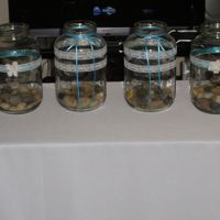 I finally got my DIY craft projects done last week and wanted to share. The big jars will have pillar candles in them for the outdoor patio Spruced up the flower girl basket Bird cage for "Wishes"...